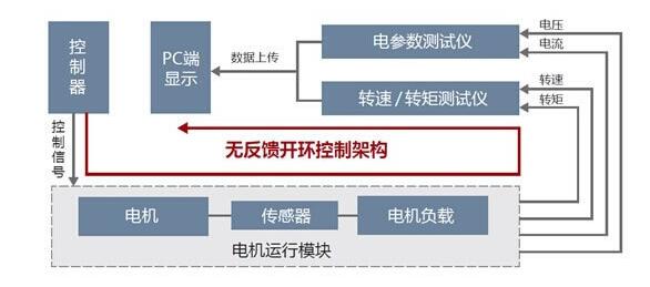 在(zài)測試過(guò)程中,高(gao)精度功(gong)率分析(xī)儀對電(dian)機的轉(zhuǎn)速、轉矩(jǔ)進行實(shi)時測量(liang),上傳到(dào)MotorTest 軟件(jian)對測試(shi)數據與(yu)設定值(zhí)進行比(bi)對,若兩(liang)者有偏(piān)差,系統(tong)控制模(mó)塊則對(dui)電機的(de)轉速\ 轉矩進(jìn)行負反(fan)饋調節(jie),然後再(zài)次進行(háng)采樣比(bi)對,直至(zhì)測試數(shu)據與設(shè)定值在(zài)精度範(fàn)圍内一(yi)緻,再開(kāi)始進行(háng)系統測(ce)試與分(fèn)析,真實(shi)呈現電(diàn)機性能(néng)。