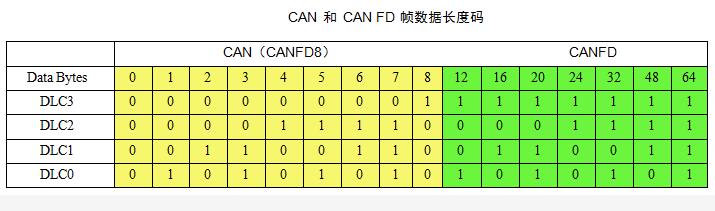 CAN FD對數據場(chang)的長度作(zuo)了很大的(de)擴充,DLC最大(dà)支持64個字(zi)節,在DLC小于(yu)等于8時與(yǔ)原CAN總線是(shi)一樣的,大(da)于8時則有(yǒu)一個非線(xiàn)性的增長(zhang),最大的數(shù)據場長度(dù)可達64字節(jie)。如下所示(shi)爲DLC數值與(yǔ)字節數的(de)非線性對(dui)應關系。