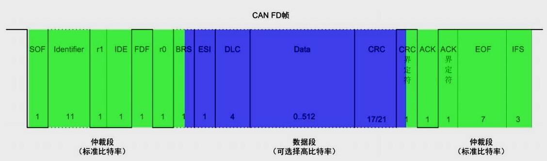1、CAN FD數(shù)據幀在幀(zhen)起始(SOF)和仲(zhòng)裁段(Arbitration Field)