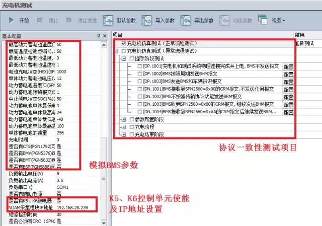 3、啓(qǐ)動CANScope對應的(de)充電樁協(xié)議一緻性(xìng)測試軟件(jian)ChargerBMS_Tester,選擇BMS仿😘真(zhēn)測試,配置(zhì)相應信息(xī)主要包括(kuo)模拟的BMS參(can)數、K5、K6控制⛹🏻♀️單(dān)元🥰使能及(ji)IP地址設置(zhi)。