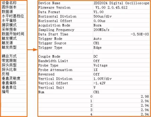 示(shi)波器的CSV數據文(wen)件裏,包含設備(bèi)信息、水平檔位(wei)、水👉平偏移等信(xìn)⛷️息,如圖2所示。