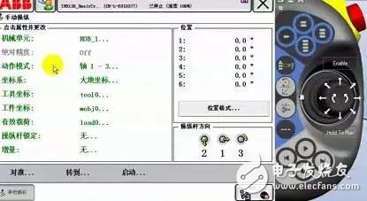 動作模(mo)式中,選(xuan)擇軸4-6。按(an)下使能(néng)器到第(di)一檔,手(shǒu)動操縱(zong)杆左右(yòu)方向可(kě)以控制(zhi)Axis4運動,上(shàng)下方向(xiang)控制Axis5運(yùn)動,旋轉(zhuan)操縱杆(gǎn)控制Axis6運(yùn)動。
