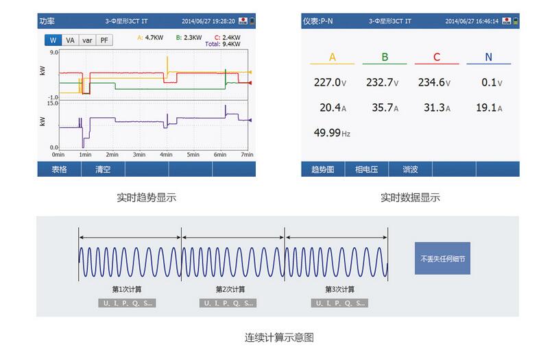 200ms刷新率(lü)、無間隙連(lián)續運算,實(shi)時顯示功(gōng)率數據與(yǔ)趨勢