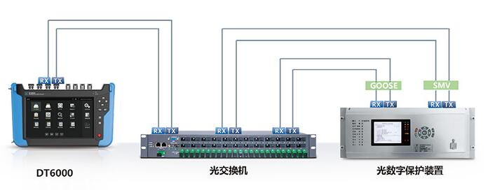 DT6000系列具(ju)有光網口(kǒu)、光串口的(de)串接功能(neng),接收報文(wen)分析報文(wén)的同時,把(ba)原始信号(hao)轉發出去(qu),不影響原(yuán)有網絡的(de)正常運行(háng),便于信号(hao)同步對比(bǐ)監測。