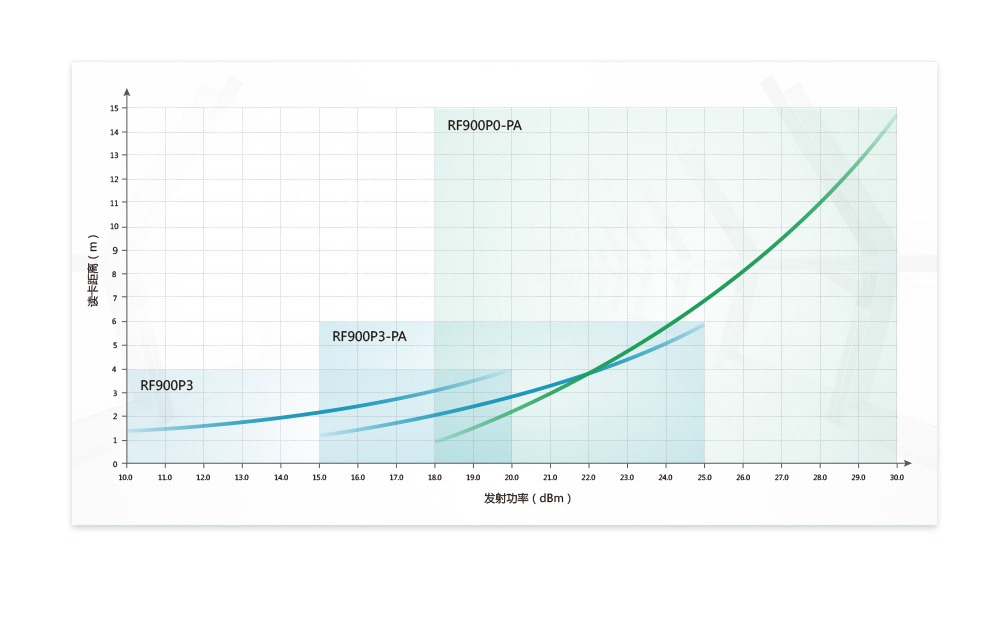 RF900系列模(mo)塊的發(fā)射功率(lü)多級(30級(ji))可調,用(yòng)戶可根(gen)據發射(shè)功率📞調(diao)整👅讀卡(kǎ)距離,以(yi)滿足不(bú)同應用(yòng)環境中(zhōng)的需求(qiu),最大讀(du)卡距離(li)超過10m。