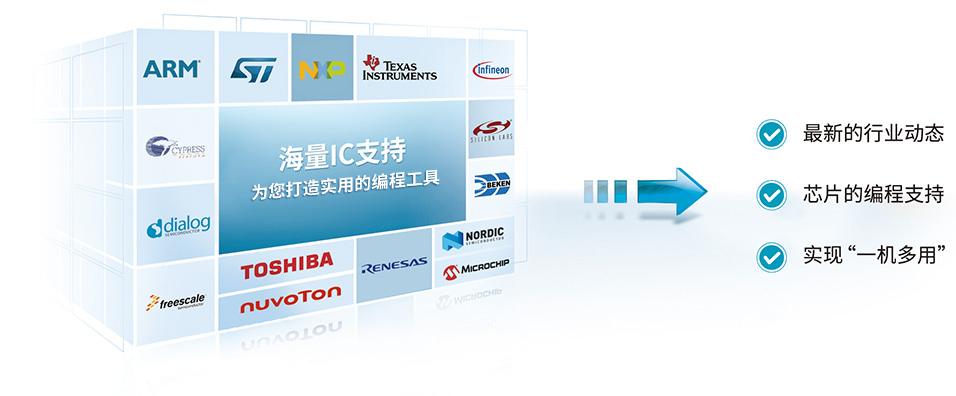 依靠着與(yu)各大廠商的良(liáng)好關系,現已支(zhī)持了各種廠㊙️商(shāng)的MCU,并🔞且能夠準(zhun)确、及時的提供(gòng)各種新芯片的(de)編程支持,最大(dà)化滿足客戶的(de)需求。