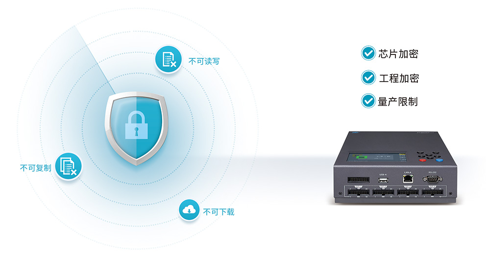 在(zài)投入巨大的研(yán)發成本後,如何(he)才能保證設計(jì)出來的産品不(bu)被第三方任意(yì)複制?雲燒錄系(xì)統有效地解決(jué)了工程加密和(he)工程管理的問(wèn)題。研發人員隻(zhi)需将加密工程(cheng)提交到雲端(服(fu)務器),隻有被授(shòu)權人才能打開(kai)加密工程,授權(quan)人仍可随時通(tōng)過服務器,實時(shi)跟蹤燒錄狀況(kuàng),進而掌握整個(gè)産品的生産流(liu)程!