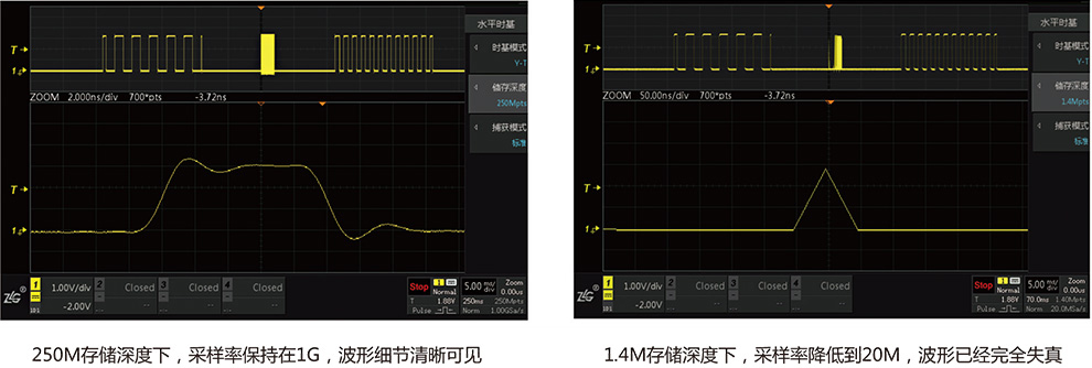 如果存儲深度(dù)能夠做到足夠大(dà),就能保持最高的(de)波形采樣率😘,則觀(guan)察到的波形會更(gèng)加真實、細膩。反之(zhī),如🈚果存✌️轻点🔞疼快点太深了视频㊙️儲深度隻(zhi)有1Mpts甚至(zhì)更低,當要觀察時(shí)長較大的波形時(shi),示波器就隻能被(bèi)迫降低采樣率。由(you)于采樣點數不足(zú),示波器顯示的波(bo)形也會嚴重失真(zhēn),甚至産生波形混(hùn)疊,誤💚導用戶測量(liàng)分析。