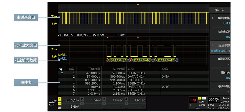 ZDS2024 Plus示波器史無(wu)前例地免費配備(bèi)了25種協(xié)議解碼,CAN、LIN、I2C、SPI、UART、USB、PS/2、DALI、Wiegand、1-Wire、DS18B20、HDQ、 SD_SPI、SD_SD、IrDA、Manchester、DiffManche、Miller、DHT11、 SHT11、 NEC、RC5、RC6、FlexRay,除此之外,ZDS2024 Plus還全球獨家(jia)免費配備了CAN FD協議解碼,真(zhēn)正再一次定義了(le)200M示波器(qì)!