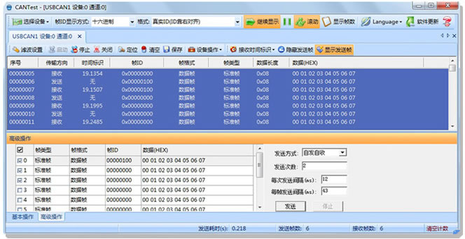 3.高級操作可預(yu)定義100幀,并且可設(she)置發送次數與間(jiān)隔