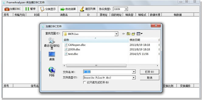 4.可加載(zǎi)車載DBC文件、CANopen協議、J1939協(xié)議