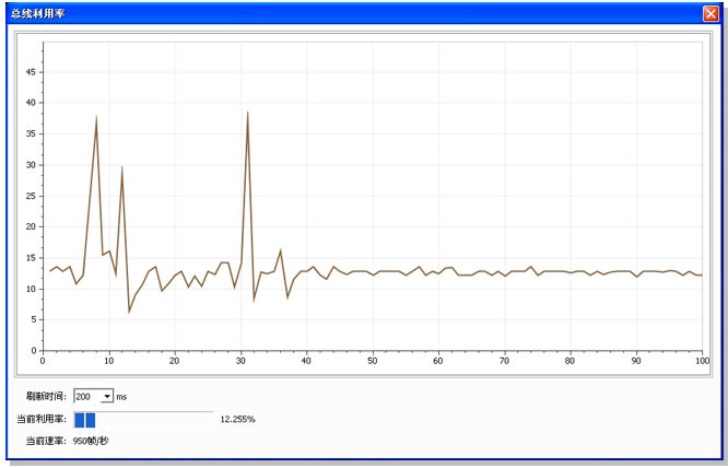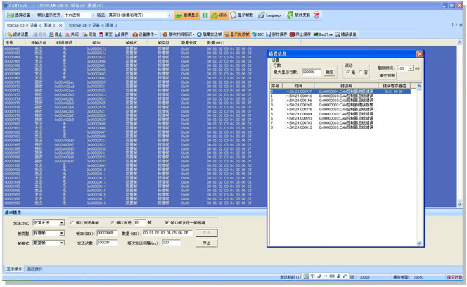 CAN接口卡(ka)在任意波特率下(xia)滿負載接收能力(lì),可以實現超⁉️大13萬(wan)🔴幀緩沖,保證不丢(diu)幀,爲後期分析保(bǎo)存完整的測試數(shù)據。