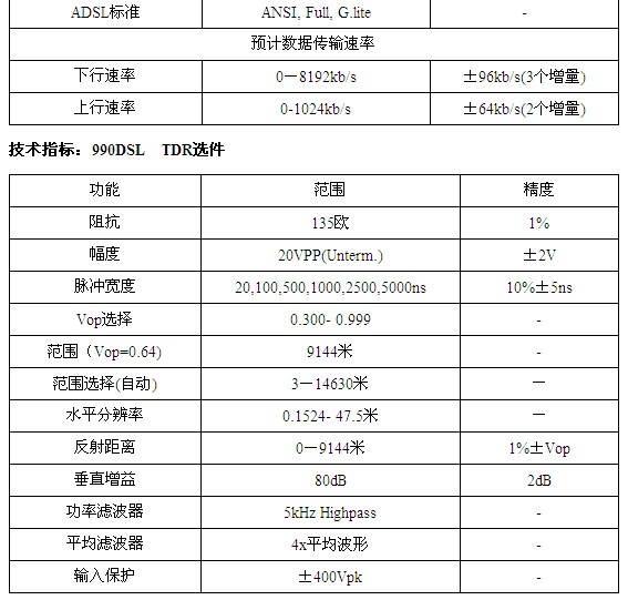 990DSL是按照可升(sheng)級的結構進行(háng)設計和制造的(de),它可以😄讓您根(gen)據需要來設置(zhì)測試的能力,以(yǐ)滿足您的特☂️殊(shu)需要。990DSL基本配置(zhi)是🔱爲傳統電話(hua)線路(POTS)應用而設(she)計的,包括🔞電壓(ya)、開路、短路、平衡(heng)、RFL、VF噪聲和損耗、端(duān)接和撥号測試(shì)、負載線圈的識(shi)别和定✍️位、線路(lù)的監測等。時域(yù)反射(TDR)選件是當(dāng)今手持式測試(shì)儀中💋故障定位(wei)精确度最高的(de)測試手段之一(yī)。它還包括了線(xian)對測試和比較(jiào)的能力,測❤️試結(jie)果存儲以及測(ce)試線對之間的(de)串擾。寬帶選件(jiàn)給♌了您依據所(suǒ)有标準的數字(zi)業務(包括HDSL、HDSL2、T1、E1、ISDN BRI、 ISDN PRI、 DDS)進行(hang)線路認證和故(gù)障診斷所需要(yào)的一切🐆功能。此(ci)外,其獨特的ADSL自(zì)動測