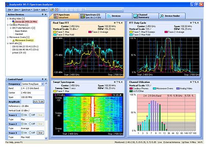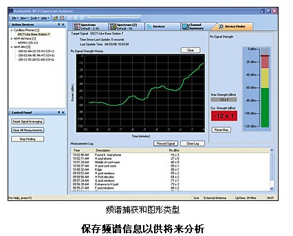 使用 AnalyzeAir Wi-Fi 頻譜分(fèn)析儀Wi-Fi 智能頻譜(pǔ)分析儀能夠清(qing)晰地看到 802.11b/g 和 802.11a WLAN 使(shǐ)用的未經許可(kě)的 2.4 GHz 和 5 GHz 頻率。即便(bian)不是 RF 工程師,也(ye)能夠快速定位(wèi)和解決無線網(wang)絡的問題。AnalyzeAir 軟件(jian)将🚶♀️ RF 專家常🏃♂️用的(de) RF 工具集成于一(yi)個易于使用的(de)界面中,讓您能(neng)夠✏️方便地實現(xian) RF 分析自動化。