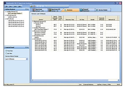 AnalyzeAir 軟件能夠解釋(shi)頻譜或信道中(zhōng)的 RF 能量,并列出(chu)正在傳送信号(hao)的設備 – 即與通(tōng)過識别能量脈(mo)沖認出相應相(xiang)關的實際設備(bèi)🔞。使用 AnalyzeAir 軟件,您可(kě)以即時發現并(bing)🐇快速識💔别問題(tí)。若要了🌈解有關(guan)某個設備的更(geng)多信息,隻需單(dan)擊此設備😍。AnalyzeAir 軟件(jian)的用戶友好界(jie)面讓您觸手可(ke)得很多有價值(zhí)的信息,從而迅(xun)速🔱解決網絡問(wèn)♊題。AnalyzeAir 能夠自動識(shí)别藍牙設備、無(wu)繩電話、微波爐(lu)、模拟🚩攝像機和(he) RF 幹擾設備。