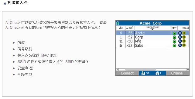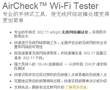 借(jiè)助簡化(huà)的指導(dǎo)型故障(zhang)處理過(guò)程,隻需(xu)點擊幾(ji)個按鈕(niǔ)🐇即可獲(huò)得所需(xu)的答案(an) 立即查(chá)看所需(xū)的測試(shì)結果,包(bao)括網絡(luo)可用性(xing)、連接情(qing)況、利用(yòng)率👅、安全(quan)設置、惡(e)意設備(bei)捕獲、幹(gàn)擾檢測(ce)等等。 堅(jian)固耐用(yong)的專用(yong) Wi-Fi 測試儀(yí),方便使(shǐ)用,易于(yu)攜帶 AirCheck 采(cǎi)用直觀(guan)的設計(jì),任何人(ren)都可輕(qīng)松快速(su)地掌握(wò)它的用(yòng)法。即時(shí)🈚開機和(he)簡化的(de)測試讓(ràng)用戶在(zai)數秒内(nèi)即可獲(huo)得答案(an),因此可(ke)以更快(kuài)地解決(jue)故障單(dan) — 讓技術(shù)人員和(hé)用戶的(de)工作效(xiào)率更高(gao)。使用 AirCheck Manager 軟(ruan)件輕松(sōng)管理測(cè)試結果(guǒ)和文件(jian)。自始至(zhì)終,AirCheck 均可(kě)幫助您(nin)消除日(rì)常無線(xian)網絡故(gu)障處理(li)的盲目(mu)性。